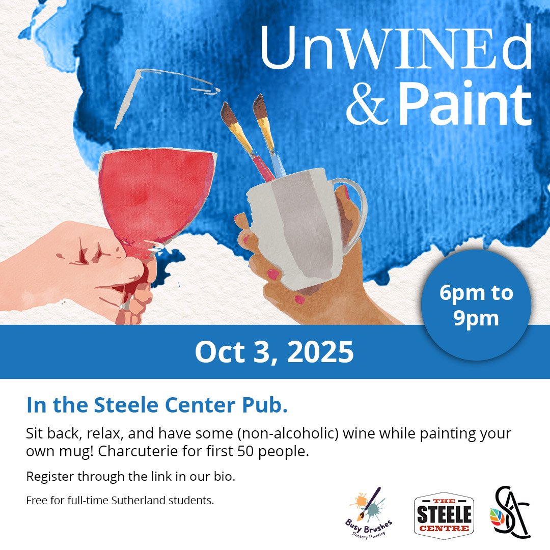 Get creative and unwind! On Oct 3 from 6–9pm, Busy Brushes will guide you in painting your own custom mug. Free for full-time Sutherland students.